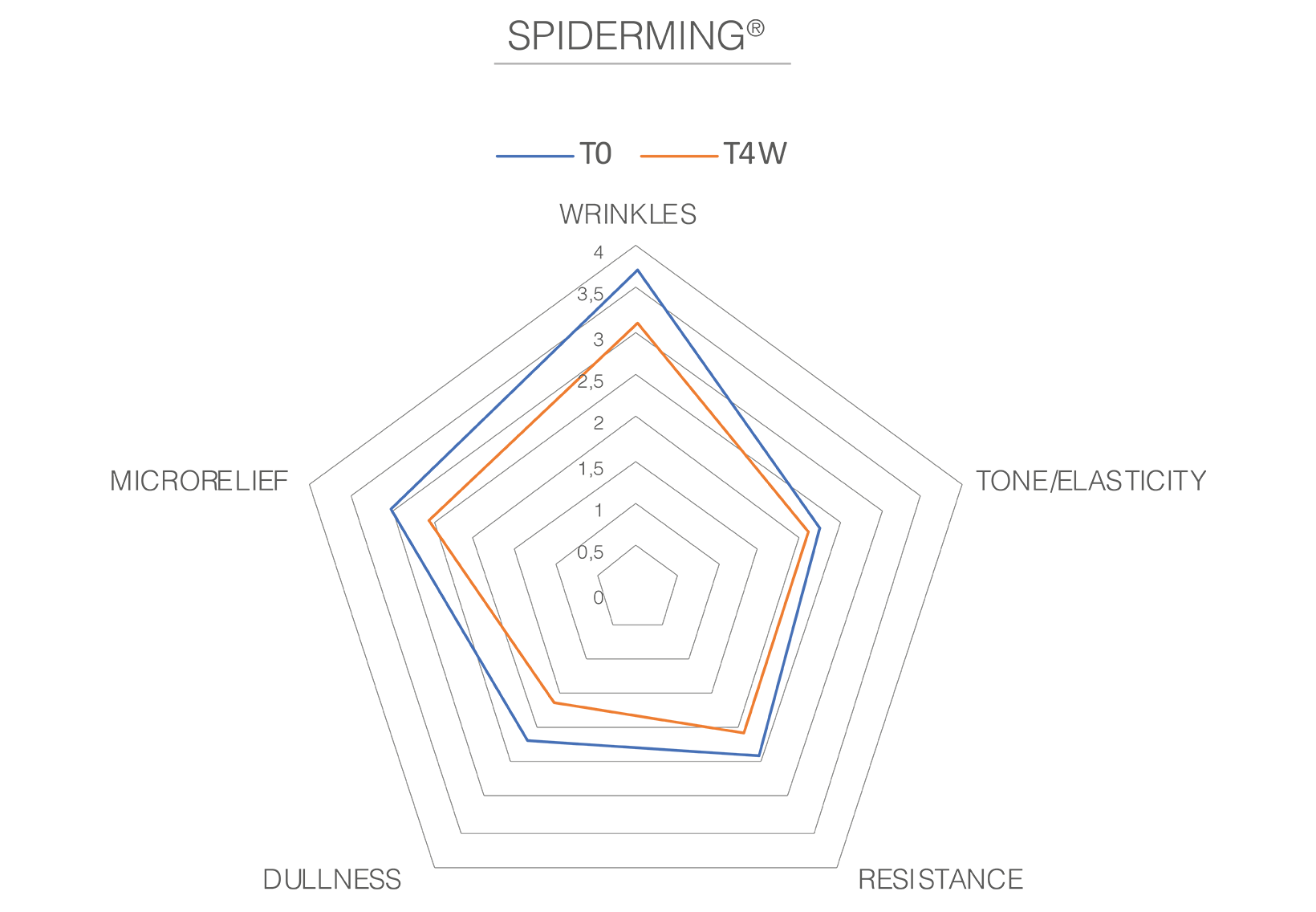 Statistically significant improvement in the skin roughness values