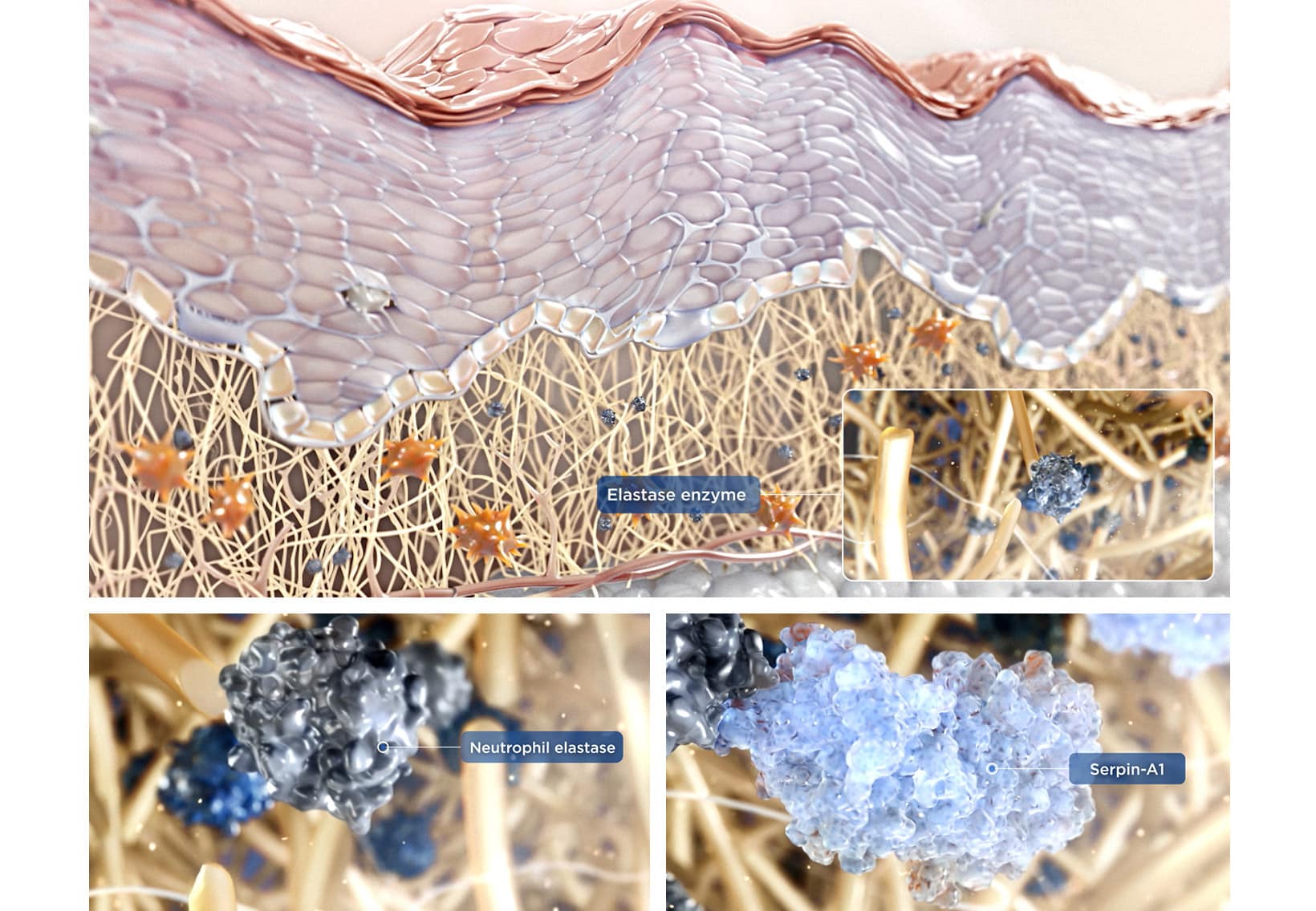 There are enzymes naturally present in our bodies that are responsible for the degradation of collagen. Serine Proteases are one major family of these troublesome enzymes. Fortunately their activity is regulated by something called Serpins. In collaboration with the University of Florence, we have managed to isolate the Key Peptide Serpin A1 and make it the major active ingredient in Definisse [KP1]® Collagen Modulator Bio-Peptide skin care range.